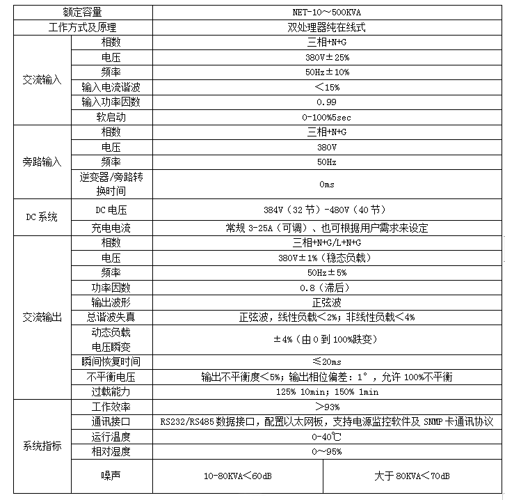 NET-10~500KVA系列技術參數表