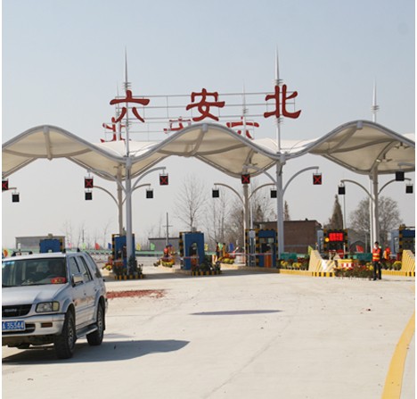 合六葉高速公路六安北收費(fèi)站改擴(kuò)建工程建設(shè)地點(diǎn)為安徽省六安市。原收費(fèi)站車道數(shù)3進(jìn)5出,收費(fèi)天棚寬44.4m,結(jié)構(gòu)為網(wǎng)架球結(jié)構(gòu)形式;改造后收費(fèi)站車道數(shù)6進(jìn)9出,收費(fèi)天棚寬88.3m,結(jié)構(gòu)為網(wǎng)架球結(jié)構(gòu)形式。